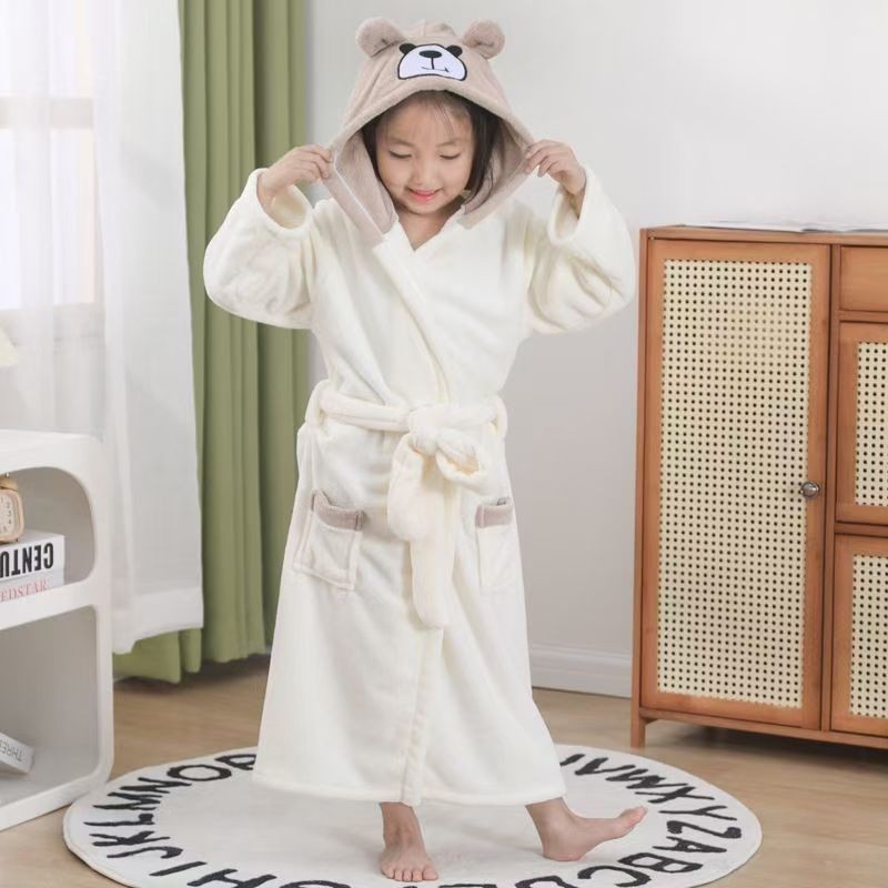 珊瑚絨小熊刺繡可愛加厚吸水不掉毛兒童浴袍 星星