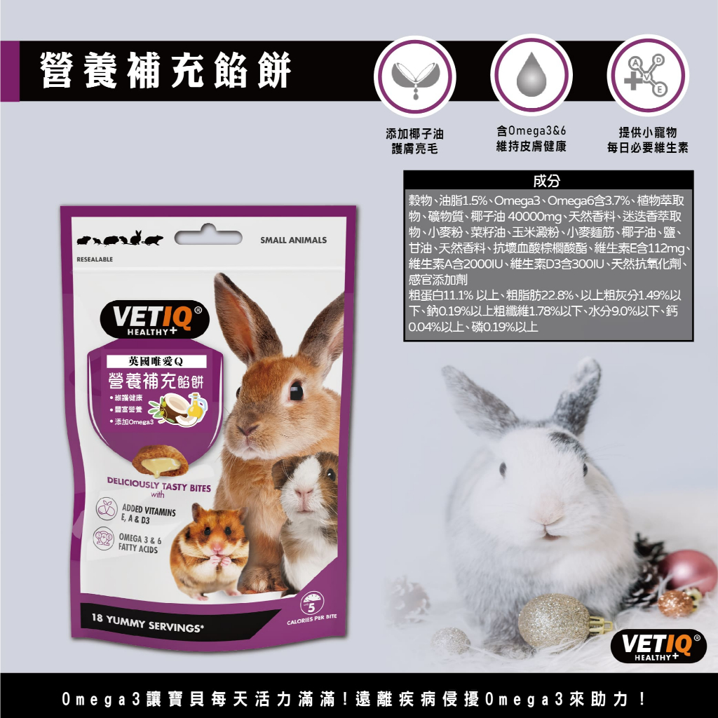 現折20 VETIQ 英國 唯愛Q 小動物機能保健餡餅│ 免疫力提升 營養補充 氣味管理 口腔保健 情緒舒緩 鼠兔保健