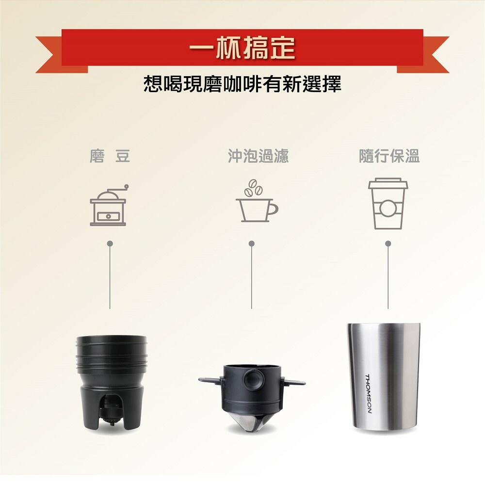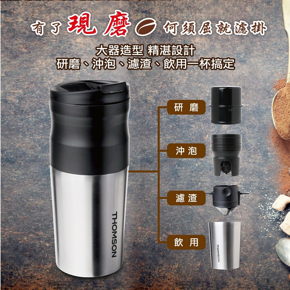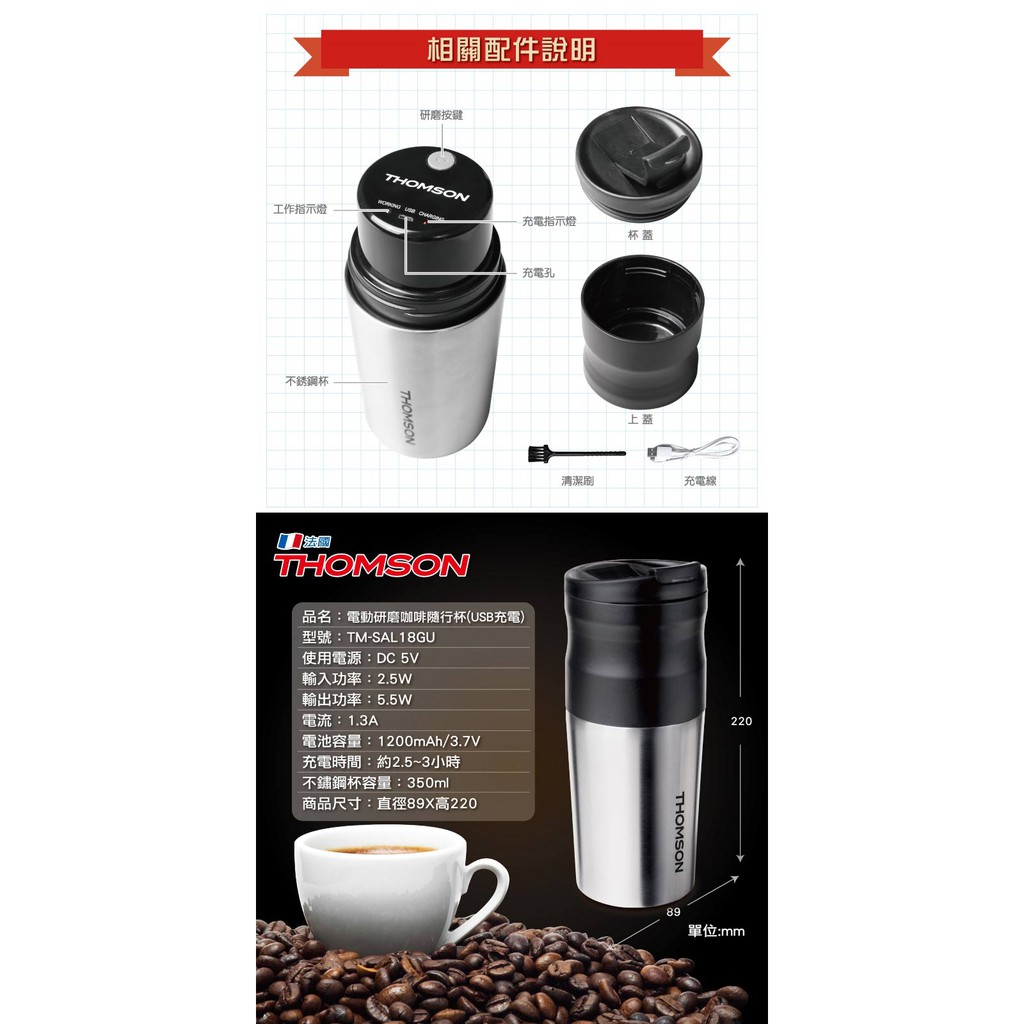 隨手現磨咖啡香【法國THOMSON】電動研磨咖啡隨行杯 (USB充電) (TM-SAL18GU)~行動咖啡機♥輕頑味