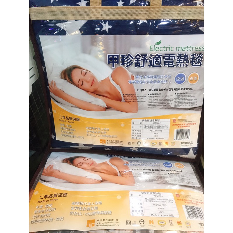 現貨!只貨運配送 有保固 韓國甲珍電熱毯KR3800J ,出貨均有發票!購買有保障