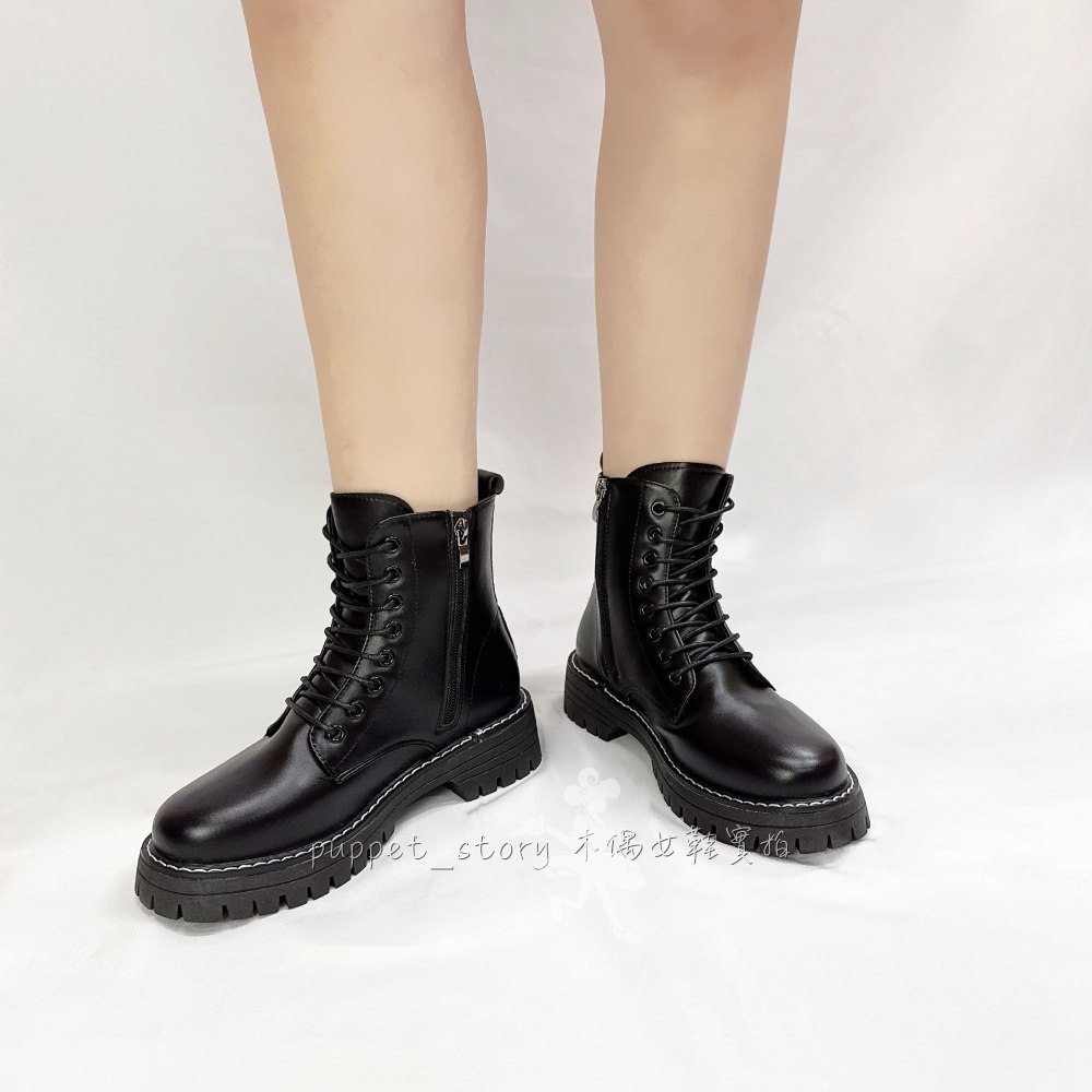 現貨✨36~43大尺碼馬丁靴 女粗跟短靴 8孔中筒馬丁靴 中筒靴 英倫風繫帶 帥氣機車靴 puppet_story木偶女