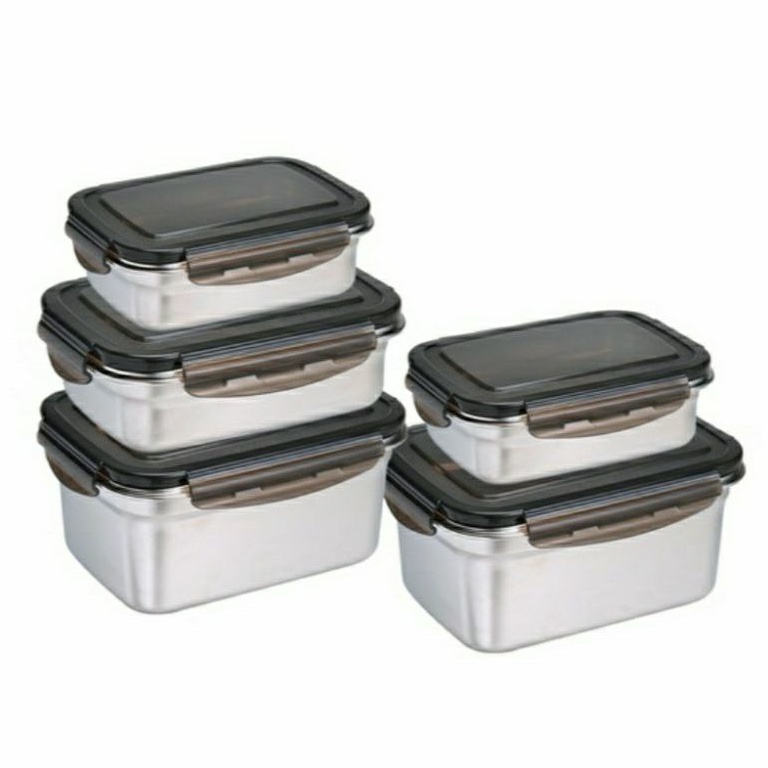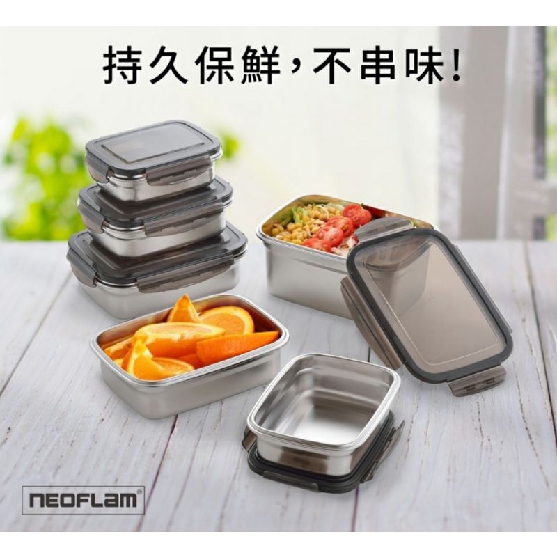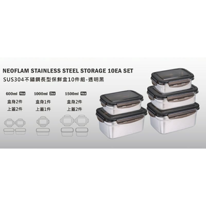 現貨《正品+發票》📣Neoflam SUS304 不鏽鋼長型保鮮盒5件組 保鮮盒 便當盒 透明黑 聖誕節 交換禮物