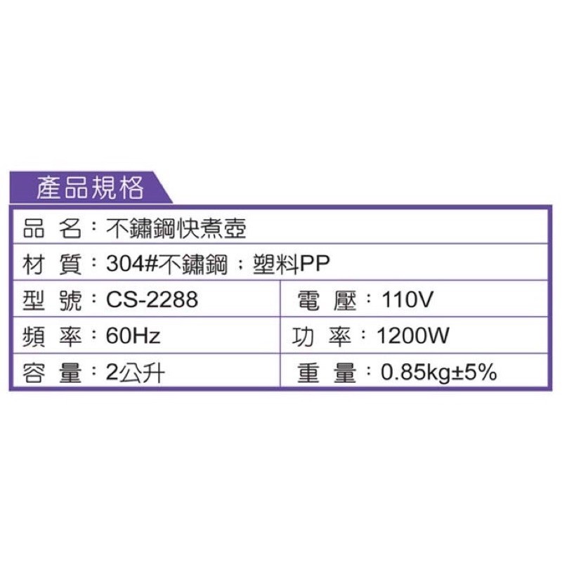 現貨不用等 卡莉娜CALINA 304不鏽鋼快煮壺2L電茶壺 CS-2288