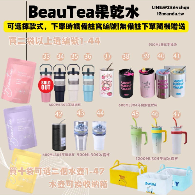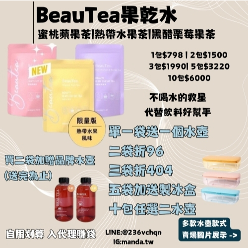 一包送水壺+ 免運) BeauTea 蜜桃蘋果茶/黑醋栗莓果茶 /熱帶水果茶(限量版) 果乾水