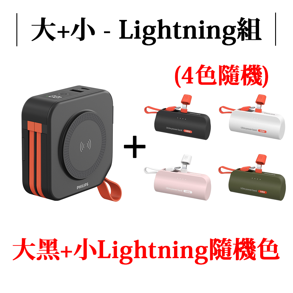 PHILIPS 飛利浦 行動電源 10000mAh 快充 行充 自帶線 多功能 DLP4347C FunCube 放心充