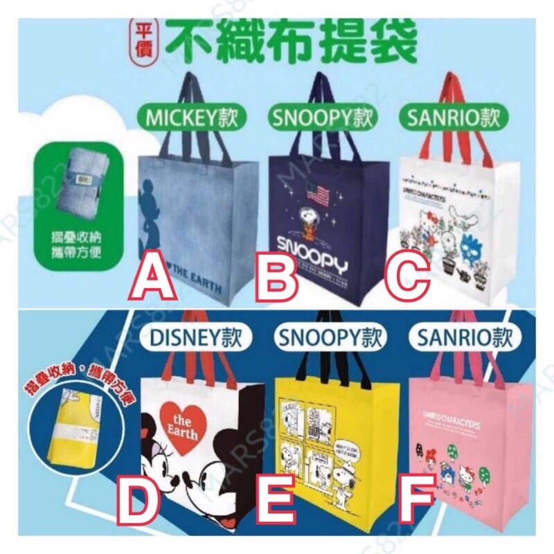 現貨免運 7-11 WBC 中華隊環保購物袋 加大款 迪士尼 三麗鷗 史努比 Kitty 蠟筆小新 多啦A夢 不織布提袋