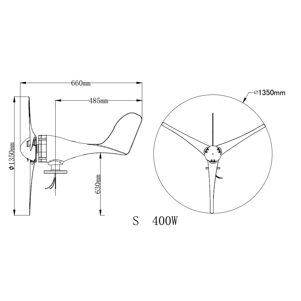 新能源 400W 12V/24V 小型家用 發電機 路燈 漁船 農田 水平轴 風力發電機 省電
