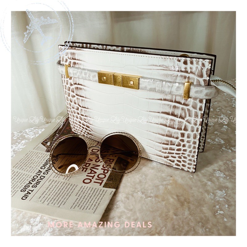 現貨美炸🇰🇷真皮鱷魚紋🐊鎖頭🔒肩背包/附兩條背袋
