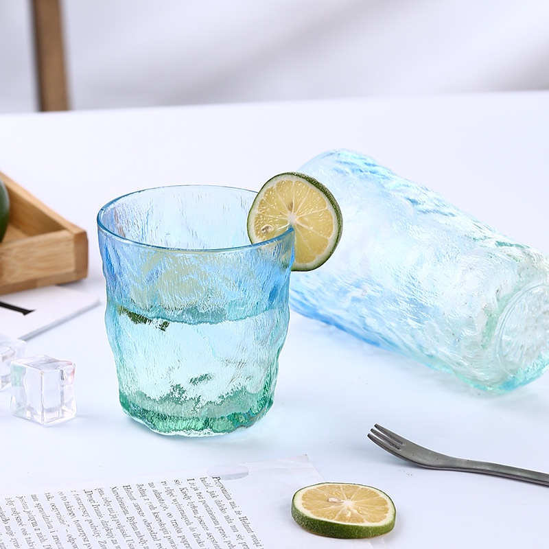 現貨!快速出貨!日系冰川杯ins風咖啡杯 日式冰川杯 威士忌杯 玻璃杯 飲料杯 冷飲杯 冰川紋玻璃杯高顏值水杯女果汁飲料
