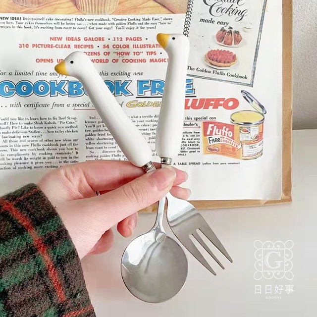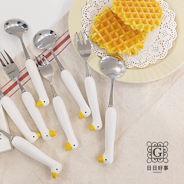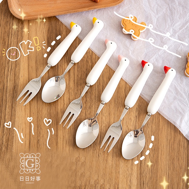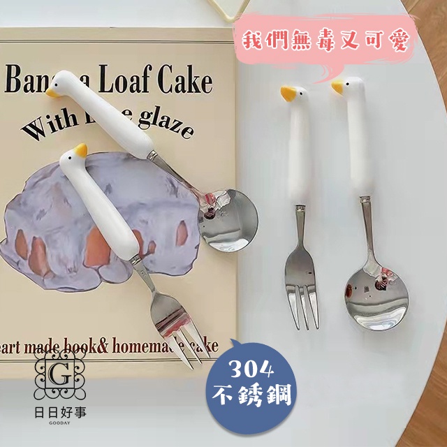 現貨!快速出貨!鴨子餐具 鴨鴨湯匙 304不鏽鋼 叉子 湯勺 攜帶餐具 隨身餐具 可愛餐具 外出餐具 卡通勺子環保餐具