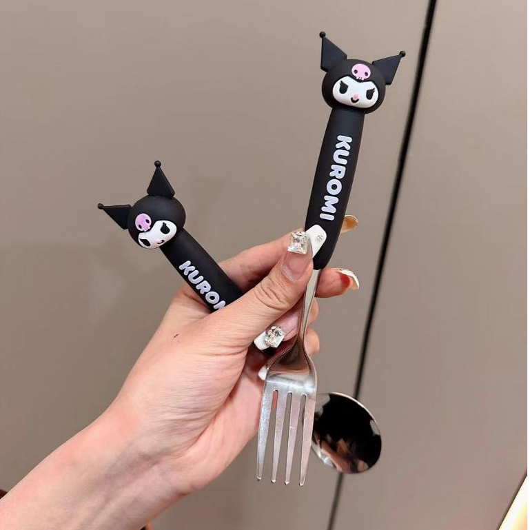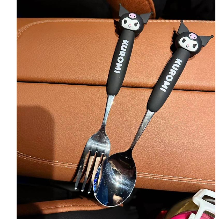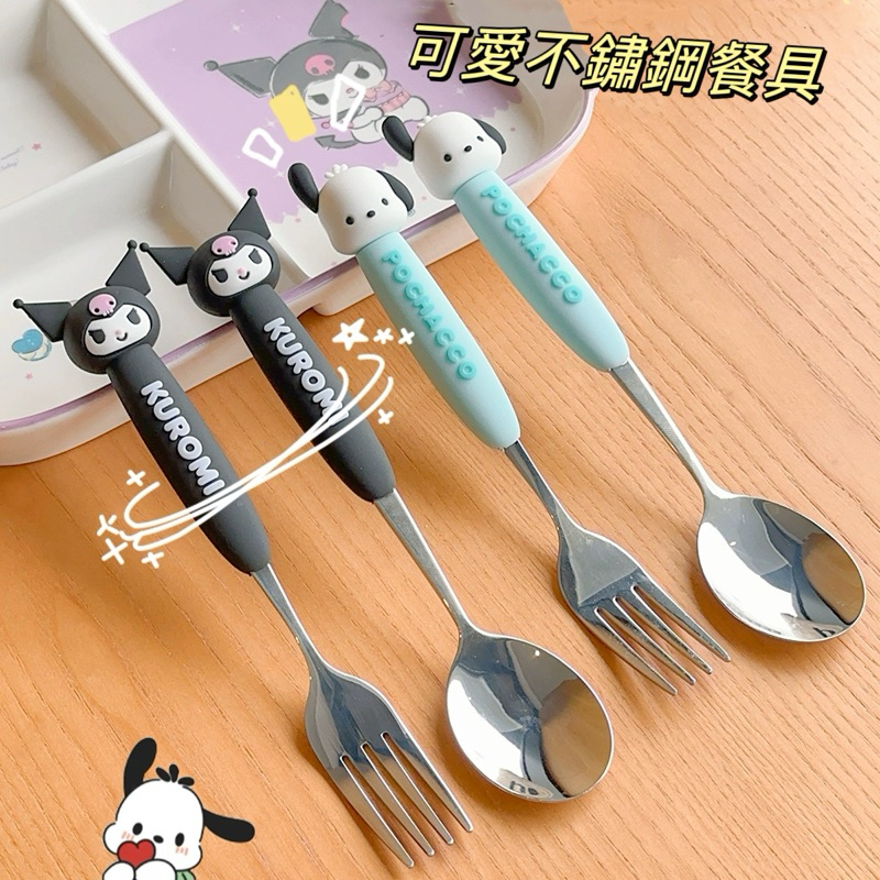 現貨 三麗鷗正版授權庫洛米可愛kuromi酷洛米 帕恰狗卡通304不鏽鋼叉子勺子飯勺甜品叉勺家用湯勺湯匙叉勺便攜餐具