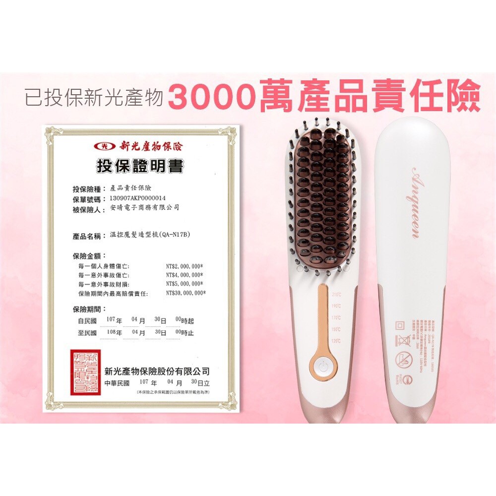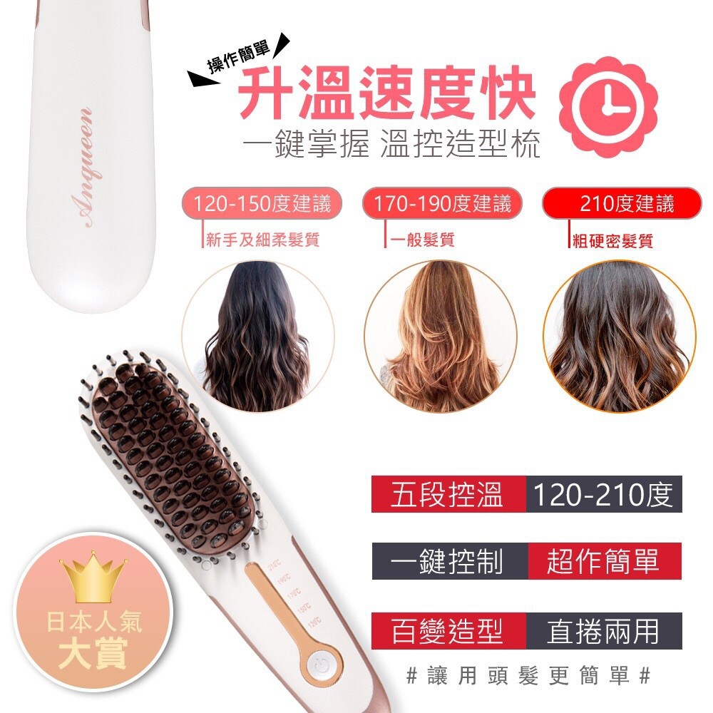 現貨 免運 公司貨 ANQUEEN QA-N17B 二代 溫控 帶線 有線 魔髮造型梳 防燙 魔髮梳 5段溫控