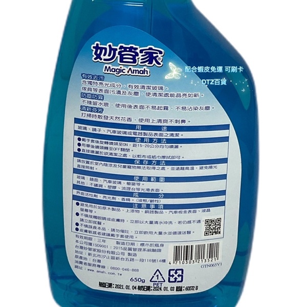 現貨 可刷卡 蝦皮代開發票[523521]妙管家 玻璃亮光清潔劑 650g