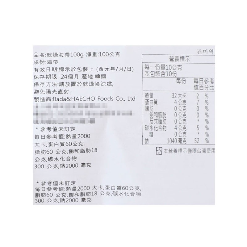 現貨 韓國 BADA HAECHO 乾燥海帶 100g 海帶