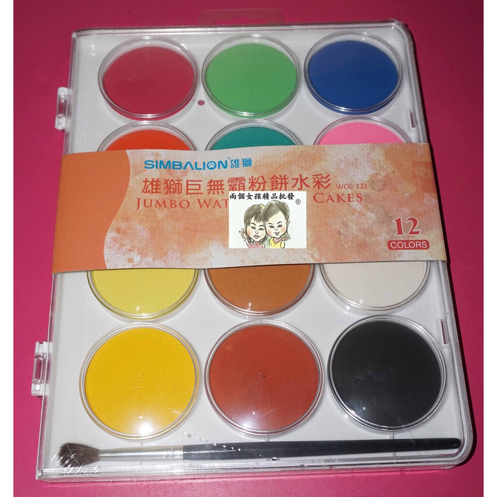 現貨 36小時內出貨 雄獅 WCC-12J 12色 巨無霸 粉餅水彩 盒蓋可當調色盤 附水彩筆 戶外寫生 彩繪 *