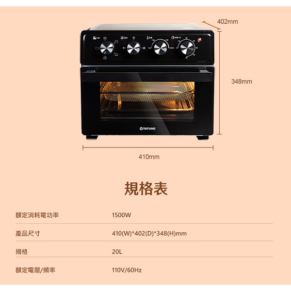現貨 TATUNG 大同 溫控旋風20公升氣炸烤箱 烘培烤炸 美味大升級 TOT-F2020A