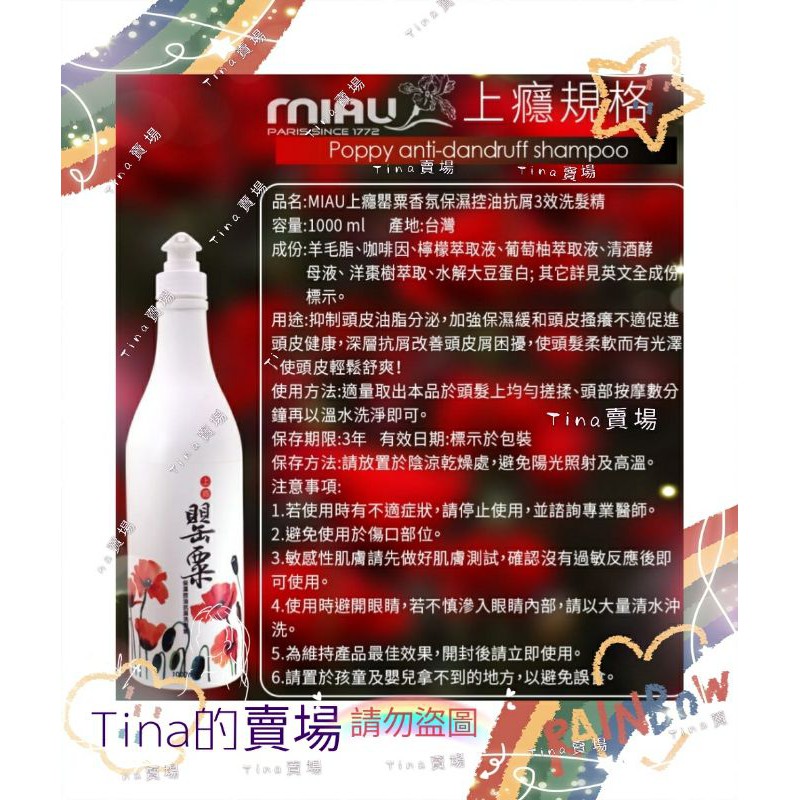 展示品出清(未開封正品)/天天出貨/公司貨/❤️MIAU罌粟香氛保濕控油抗屑3效洗髮精 1000ml