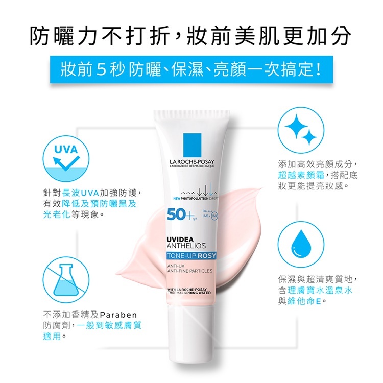 理膚寶水 瑰蜜霜 全護清透亮顏防曬隔離乳UVA PRO 50ml 均勻膚色 (最低效期至2026/12) 官方旗艦店