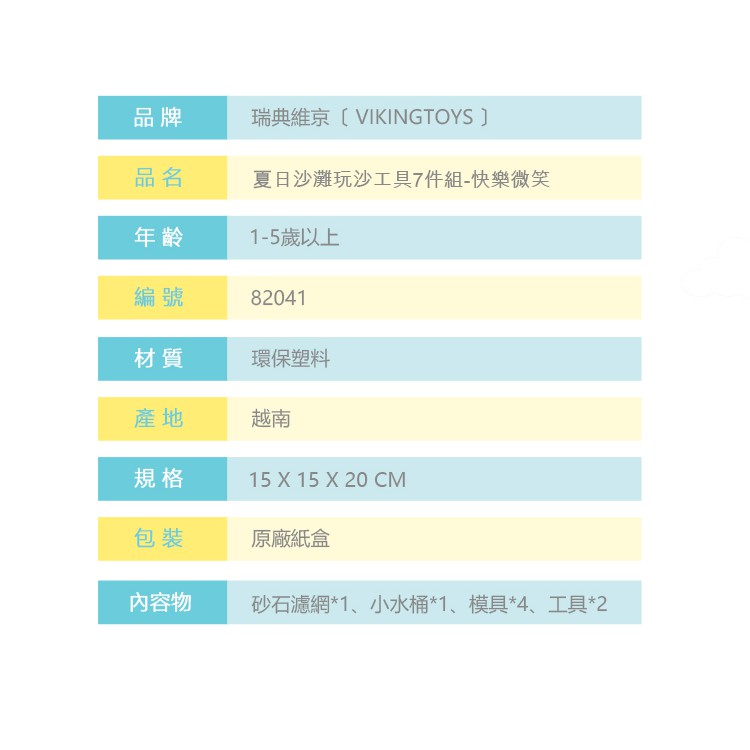 瑞典Viking toys踩不壞/不刮手的維京玩具-夏日沙灘玩沙工具7件組-快樂微笑 玩沙工具 戲水玩具 沙坑玩具