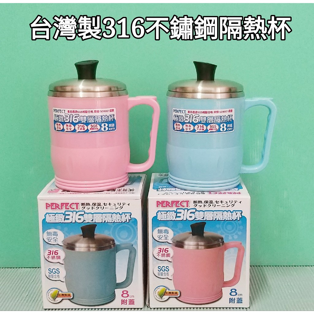生活好物購台灣製 理想牌 PERFECT 極緻316雙層隔熱杯 8CM / 400ML (附蓋) 雙色馬克杯 雙層隔熱杯