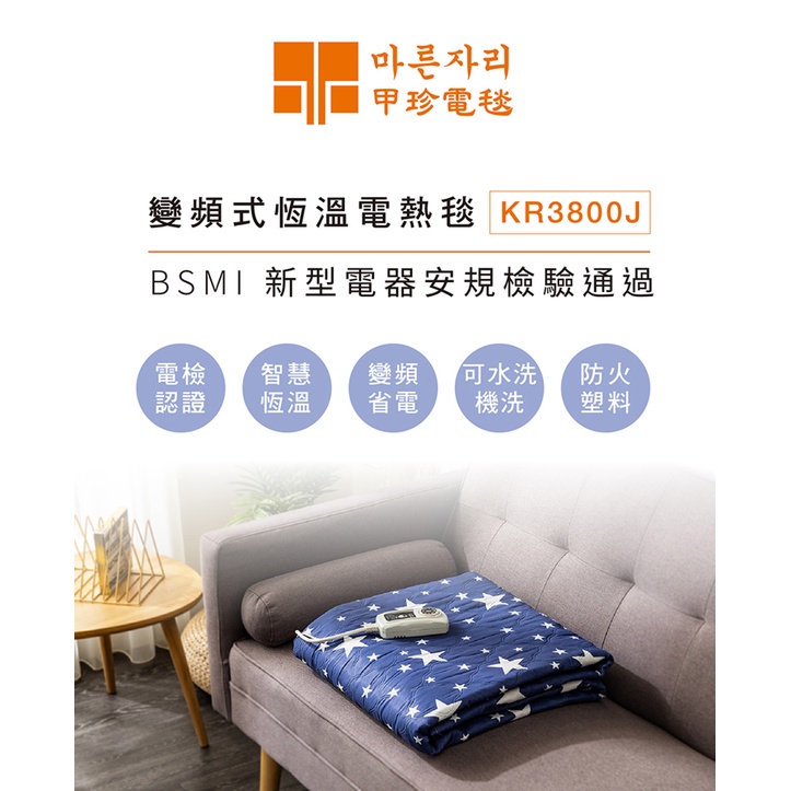 甲珍 電熱毯 露營電毯 KR-3800J 單人 雙人 暖爐 韓國 甲珍電熱毯 恆溫電熱毯 發熱墊 公司貨 有保固