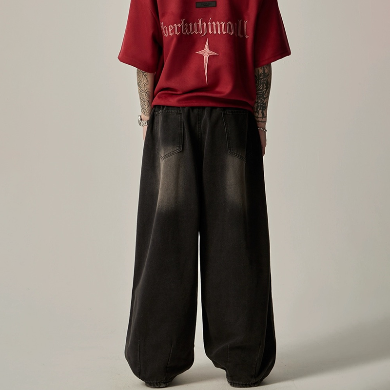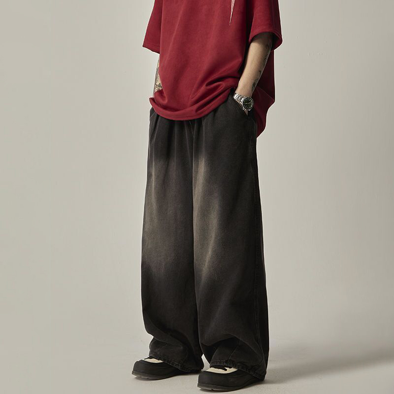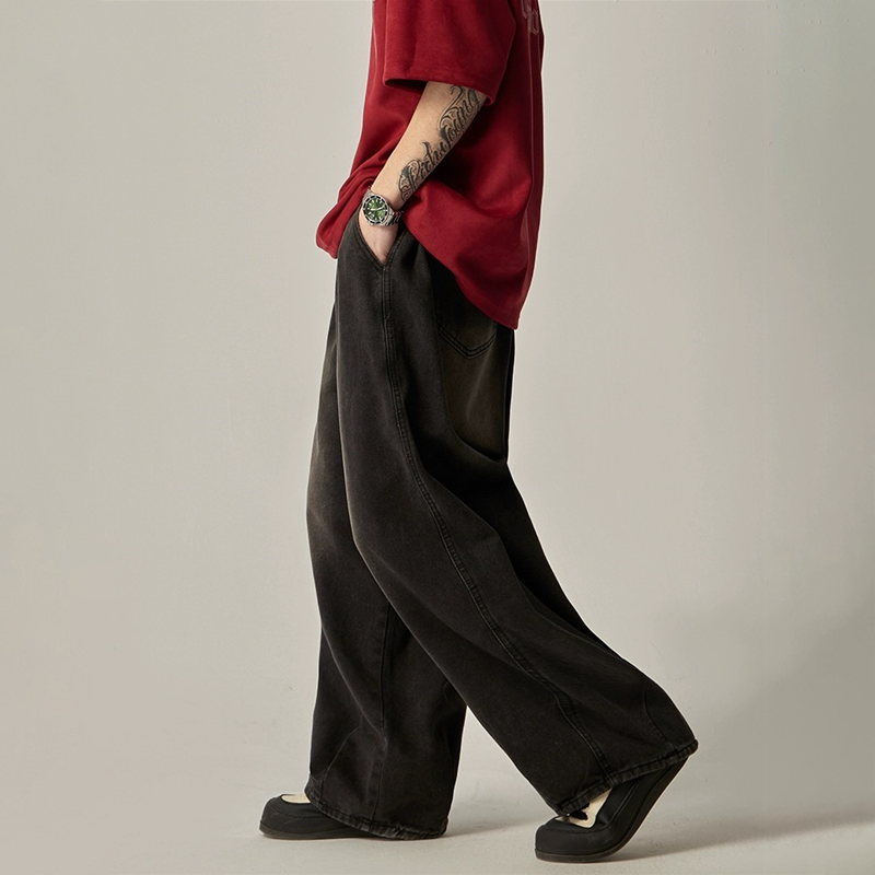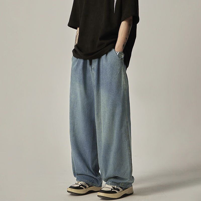 【單件免郵】男士復古水洗仿舊牛仔褲高街時尚直筒褲休閒長褲。