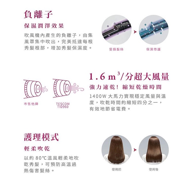 當天出貨 外箱盒損能接受在下單 (必買)TESCOM專業型大風量負離子吹風機TID960TW 抽獎送禮必備 女朋友的最