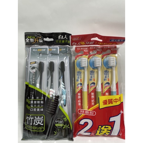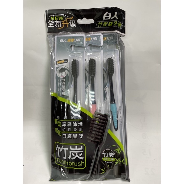 白人竹炭絲牙刷,彈牙刷3入組