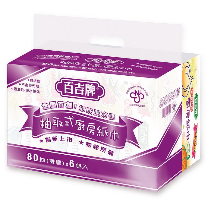百吉牌 抽取式廚房紙巾 80抽 x 6包【家樂福】