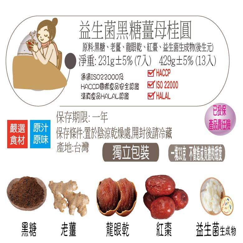 益生菌黑糖薑母桂圓養身飲 黑糖 薑母 桂圓 黑糖磚 獨家專利配方 益生菌生成物 蔡薑君