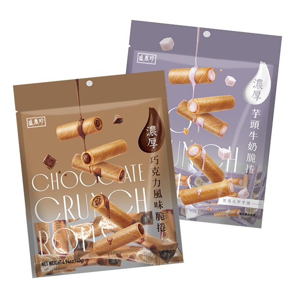 盛香珍 濃厚脆捲 巧克力 芋頭 花生 捲心酥 西點 香濃爆漿 外皮酥脆 140g/袋 [蓁莘]