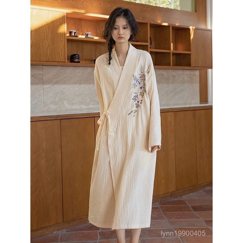 睡衣 浴袍 新中式 舒適 透氣 親膚 中長款 春秋大碼 家居服2025年新款睡裙女春秋款寬鬆浴袍小衆高顔值睡袍長袖家居服