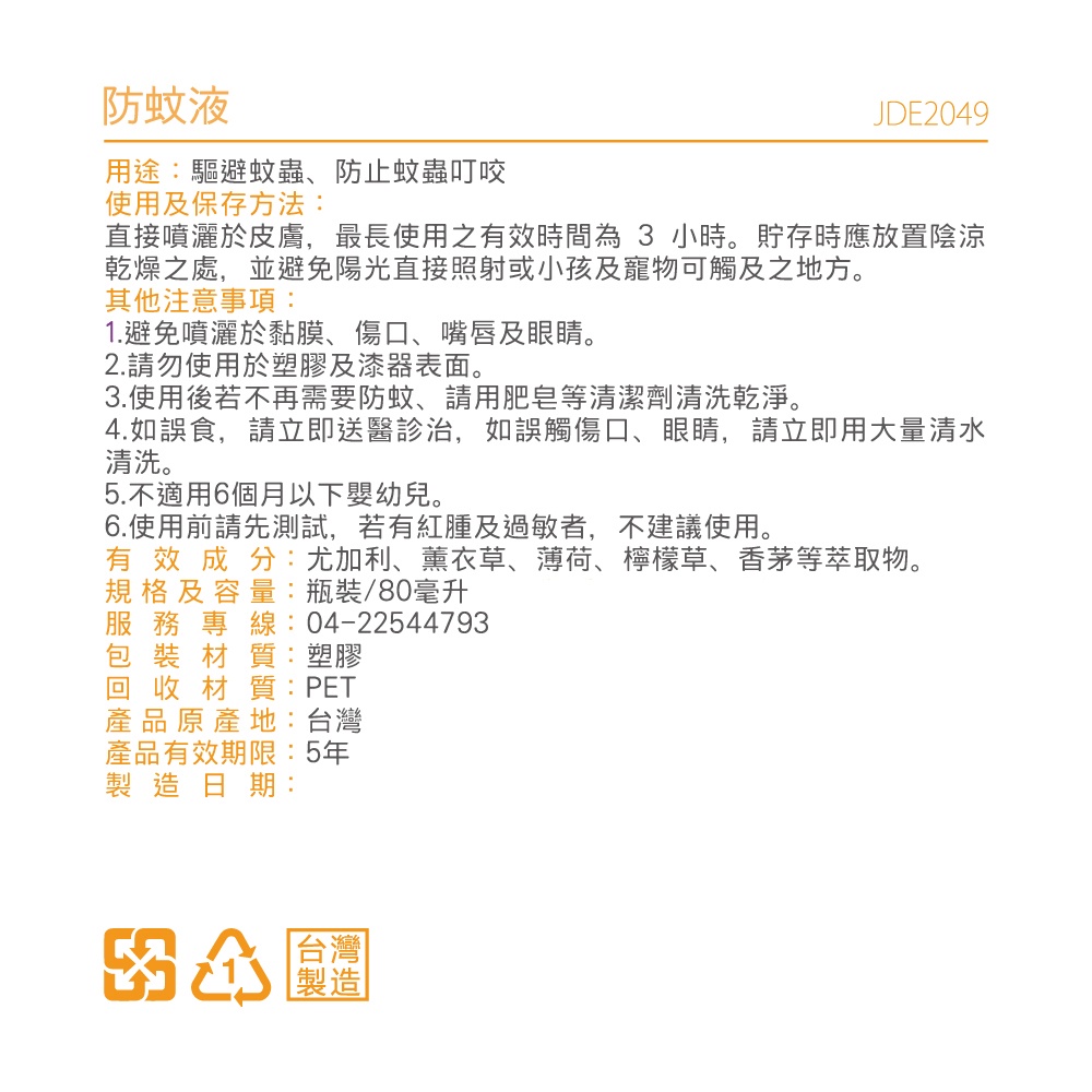 【福來朗 HUKUROU】天然防蚊液 80ml 驅蚊液 防小黑蚊 防蚊噴霧 溫和不刺激 嬰兒/兒童/孕婦/戶外