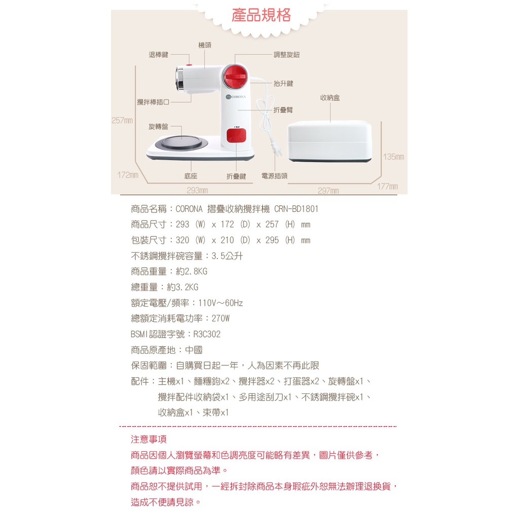 福利品【CORONA】摺疊收納攪拌機 一機多用調理機 400次咖啡必備 CRN-BD1801