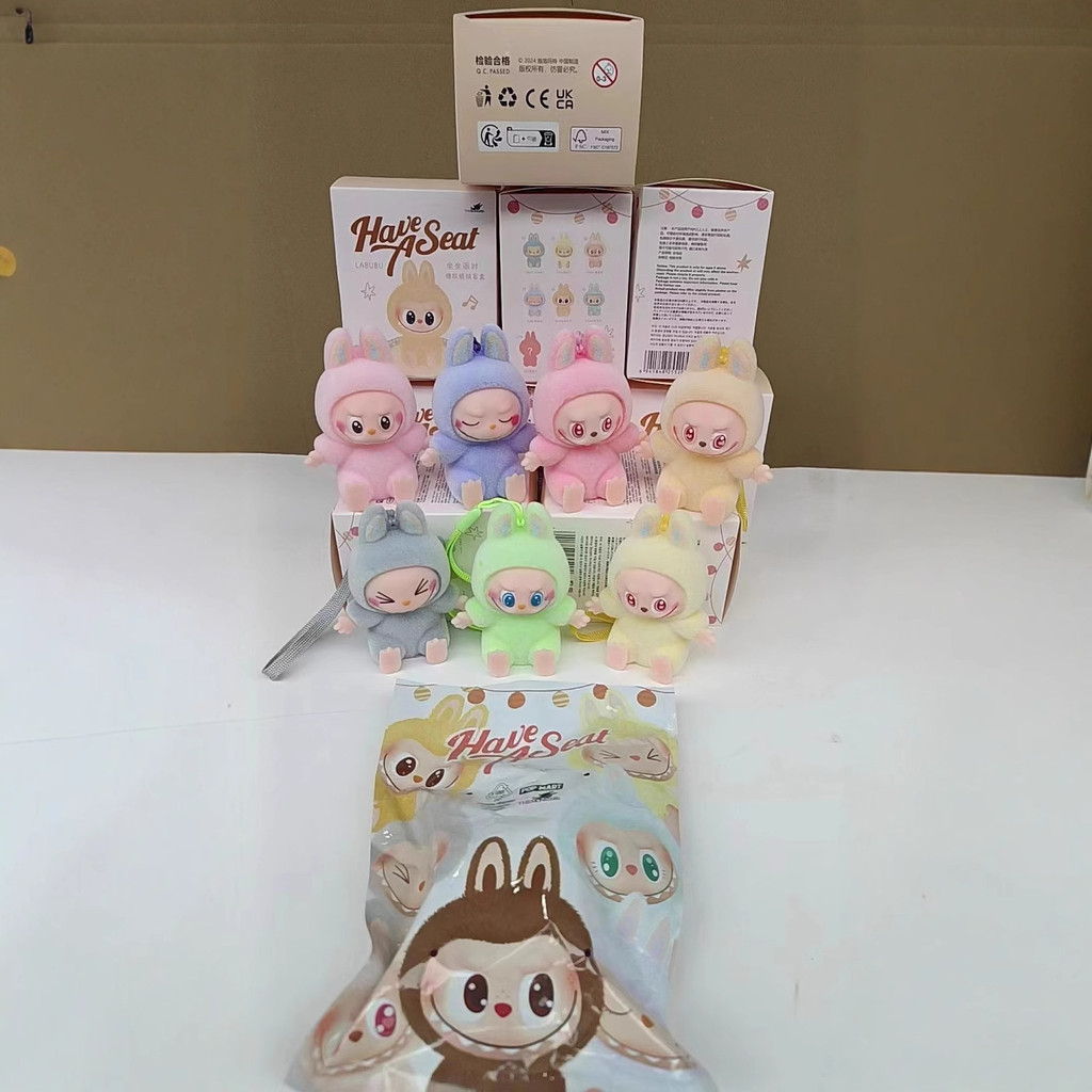 福利盲盒labubu拉布布坐坐派對二代馬卡龍高顏值盲盒搪膠掛件手工玩具擺件
