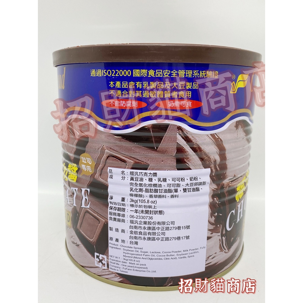 福汎 巧克力醬 巧克力 巧克力果醬 營業用 抹醬900g/3kg【招財貓商店】
