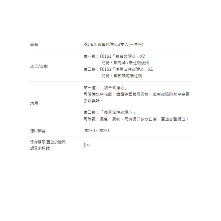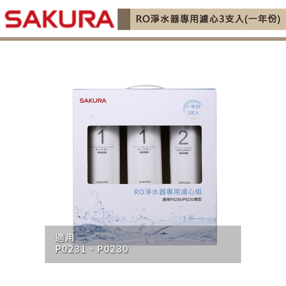 私訊享優惠-櫻花牌-F0191-RO淨水器專用濾心3支入(一年份) 適用機型P0230、P0231-無安裝僅配送