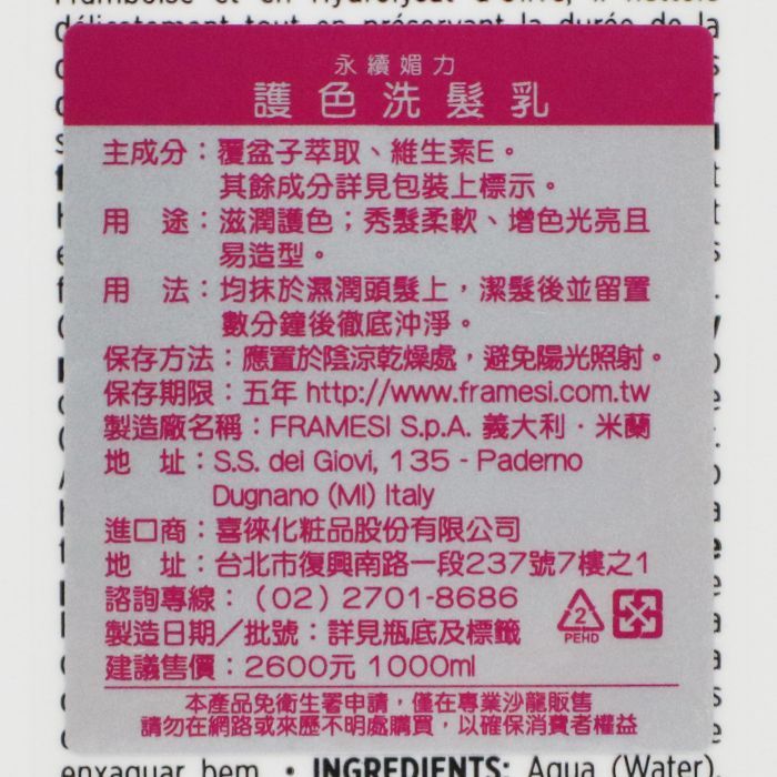 立坽『洗髮精』喜徠化粧品公司貨 Framesi雲緹佛媚絲 永續媚力護色洗髮乳1000ml IH04