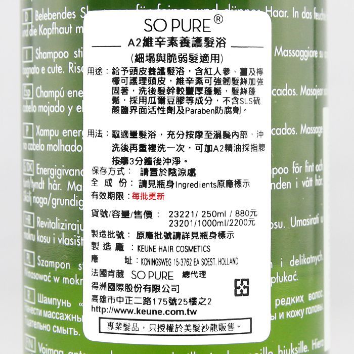 立坽『頭皮調理洗髮精』得洲公司貨 KEUNE肯葳 SO PURE A2維辛素養護髮浴 HS05