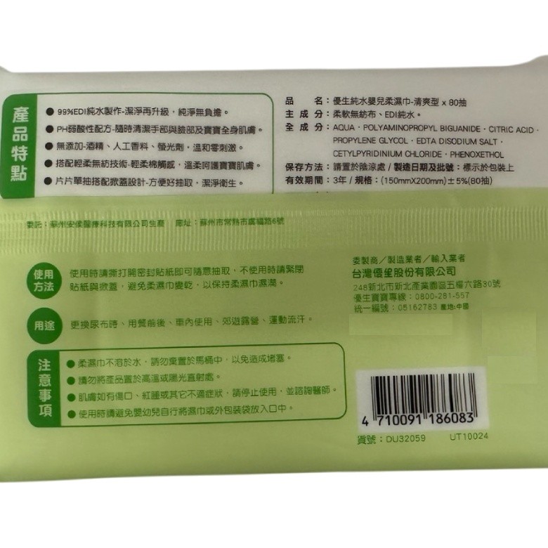 箱購免運 優生 純水嬰兒柔濕巾-清爽型(80抽X24包/箱)[免運][大買家]