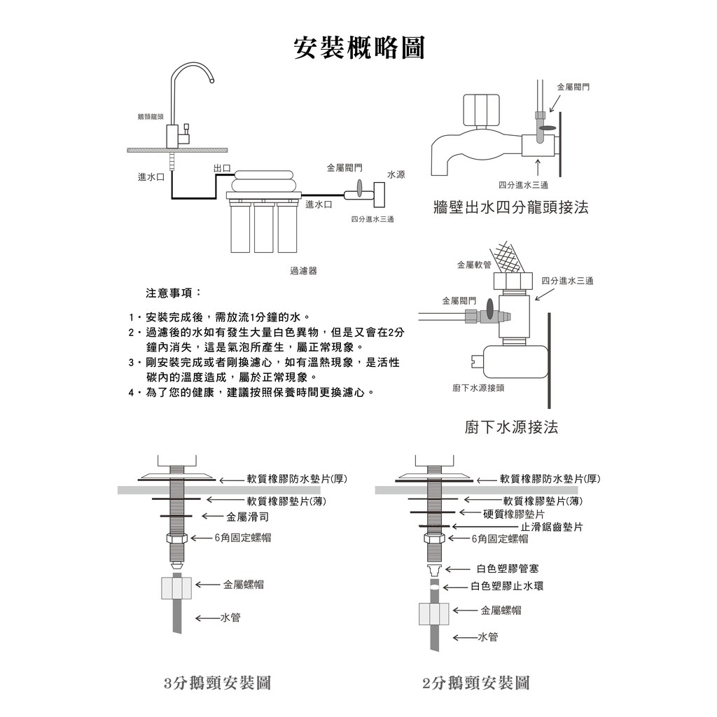 簡易 三道式 淨水器 除氯、水垢、雜質 (完整配件組 含鵝頸) 2分規格 【水易購台中店】