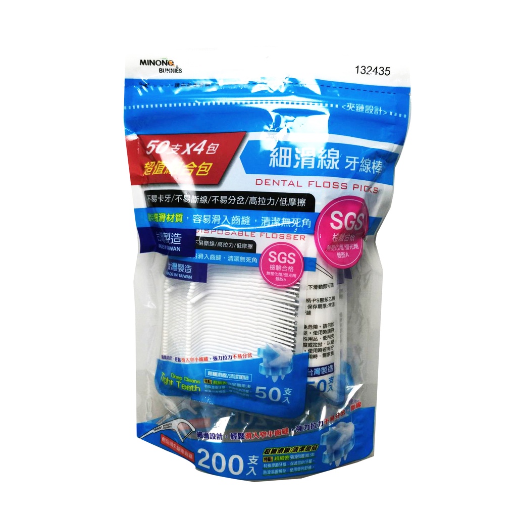 米諾諾細滑牙線棒 200支(50支*4包) 牙線棒 牙籤 牙線 剔牙 潔牙 132435