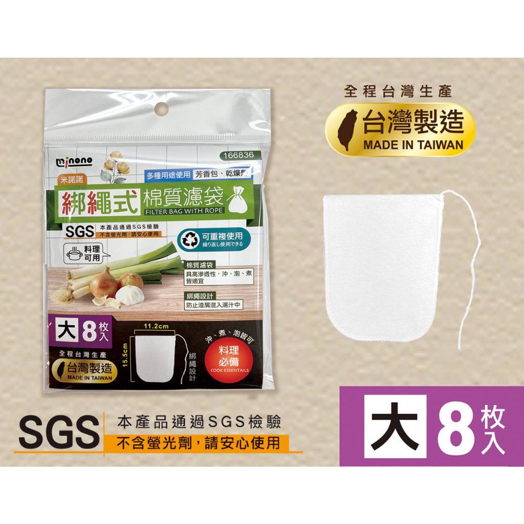 米諾諾綁繩式棉質濾袋特大4入/大8入/中10入/小12入 過濾 廚房 藥膳袋 中藥袋 滷包袋 滷味袋 過濾袋 薰香包