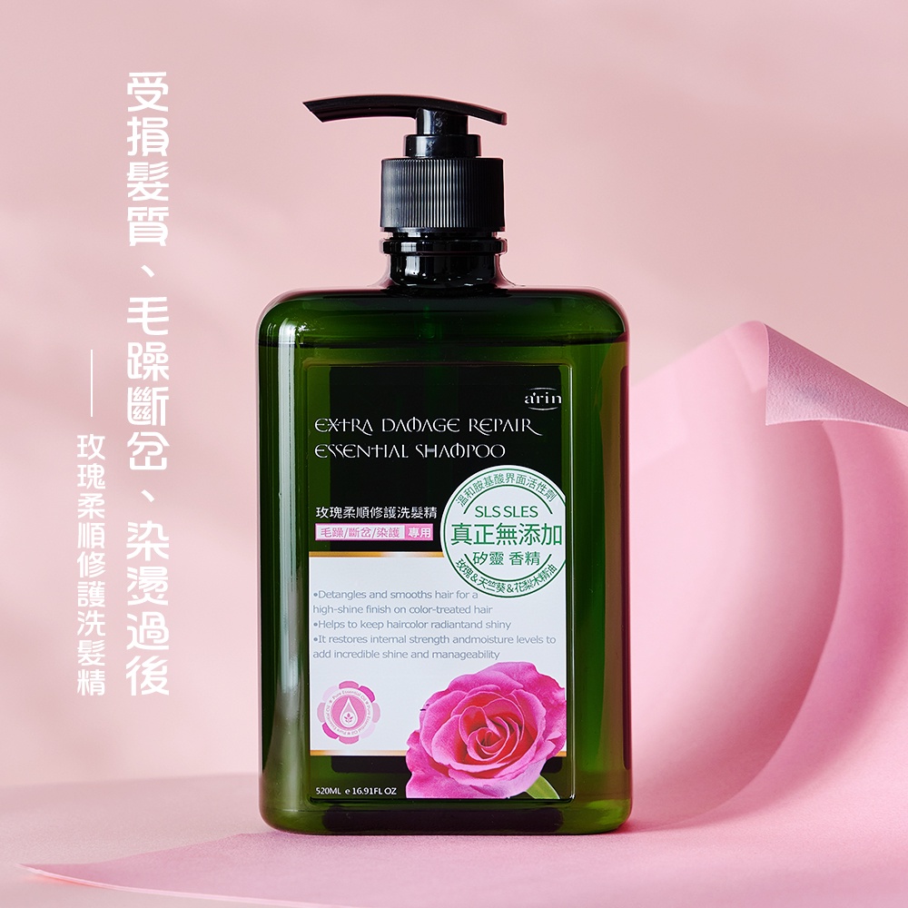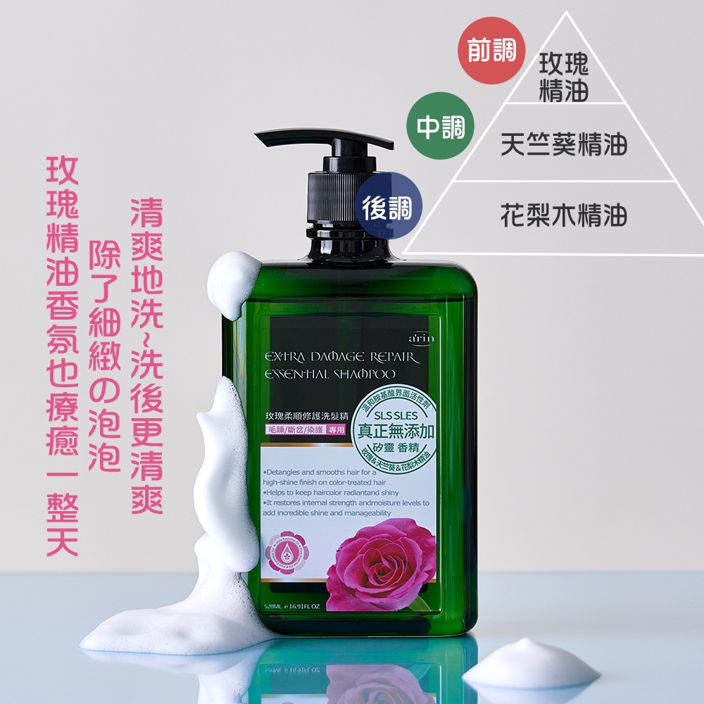 精油洗髮精 胺基酸洗髮精 沙龍洗髮精 520ml 花梨木精油抗毛躁 天竺葵精油平衡油脂 玫瑰精油療癒舒緩 arin氧潤