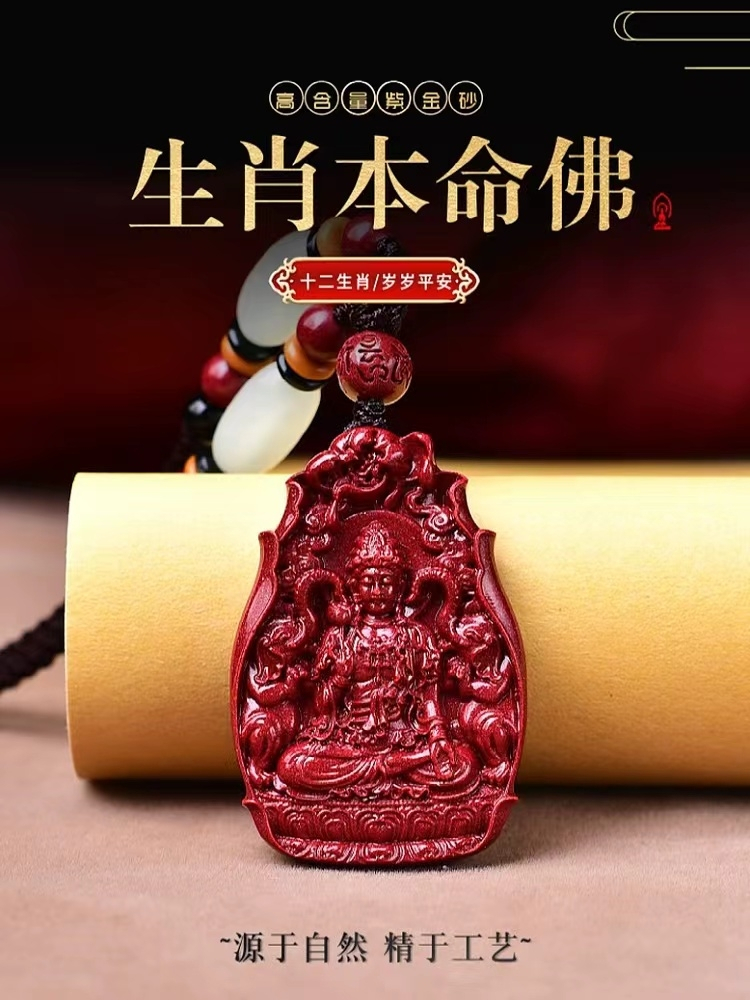 紫南宮過爐開光🙏🏻天然真朱砂本命佛吊墜 硃砂項練 吊墜 男女款十二生肖掛件 屬兔文殊菩薩 本命年 護身符項鏈 禮物