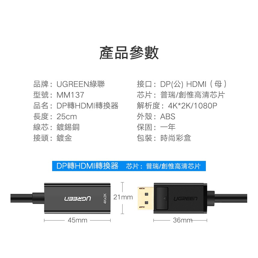 【綠聯】DP轉HDMI轉換器/DisplayPort to HDMI轉換器 影音同步 4K高清 現貨 隔日到貨