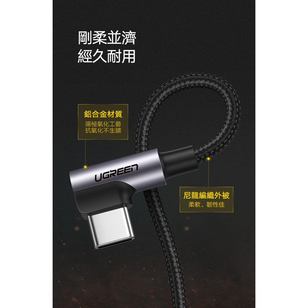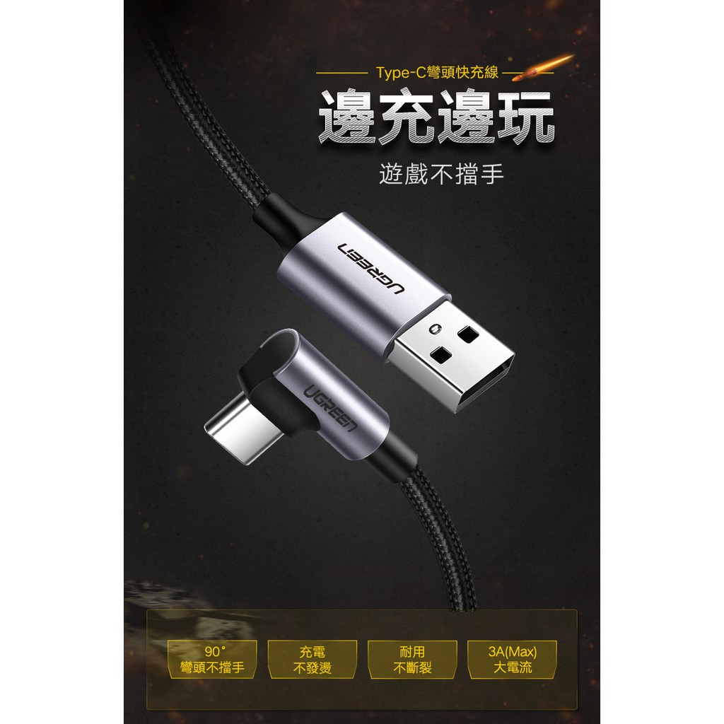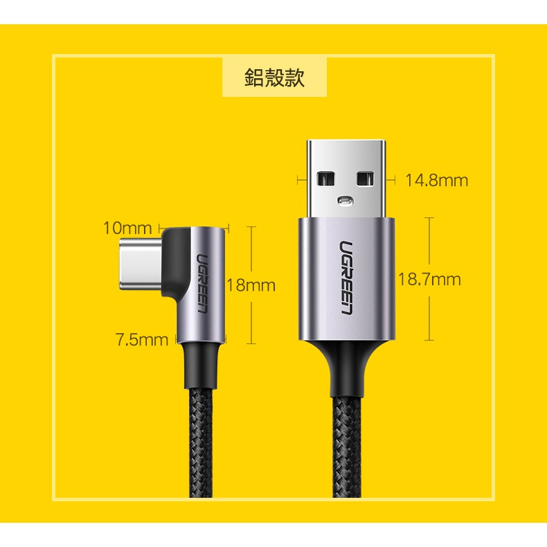 綠聯 USB A to Type C充電線 0.5~3公尺 L型 金屬編織 快充線 Type A傳輸線 電競專用版 現貨