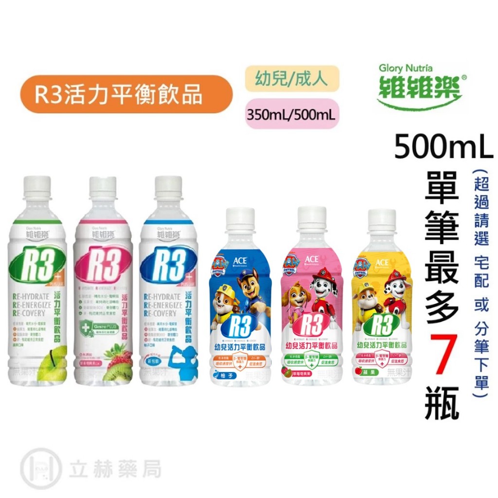維維樂 活力平衡飲 R3 電解液 (柚子/草莓/蘋果) 500 mL 柚子 350mL 公司貨【立赫藥局