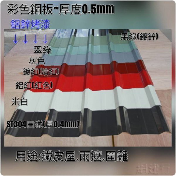 網建行 ㊣ 【三合一彩色鋼板 三明治板】烤漆鋼板 角浪板 ~鐵皮屋屋簷~果綠 翠綠 灰色 鍍紅 鋁紅 米白 每尺108元