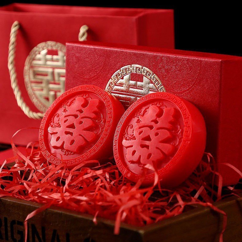 结婚香皂红色一对喜皂礼物送新人新娘闺蜜婚礼创意实用伴手礼